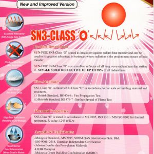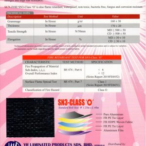 SUN-FOIL® SN3-Class ‘O’ is also flame retardant, waterproof, non-toxic, bacteria free, fungus and corrosion resistant.