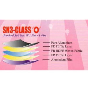 SUN-FOIL® SN3-Class ‘O’ is made by single sided high reflectivity pure aluminium bonded with a layer of FR HDPE woven fabric with a single sided high quality reflective aluminium film by special FR bonding material. It provides excellent insulation properties and effective radiant barrier.