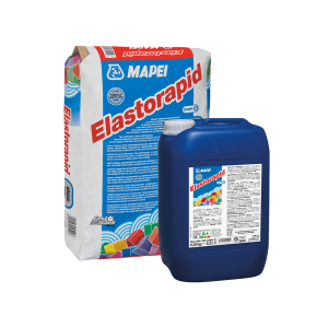 Two-component, high-performance, highly-deformable, quick-setting and drying cementitious adhesive with no vertical slip and extended open time for ceramic tiles and stone material (thickness of adhesive up to 10mm).