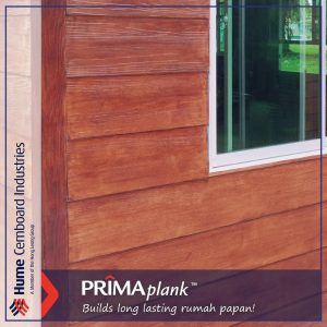 PRIMA Plank is an autoclaved cellulose fibre reinforced cement siding board manufactured by Hume Cemboard Industries Sdn Bhd (HCI) an ISO 9001 & ISO 14001 certified company. Manufactured from portland cement, cellulose fibre, finely ground sand and water, PRIMA Plank has become extremely popular when a relatively maintenance free timber planking appearance is desired.