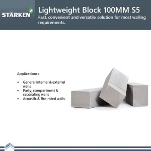 Starken Standard Blocks offer a fast, convenient and versatile solution for most walling requirements. Each block is equivalent to 7 pieces of common brick. Starken AAC blocks are easy to work with and can be cut to size with a tungsten carbide-tipped handsaw. This allows maximum flexibility and minimizes wastage.