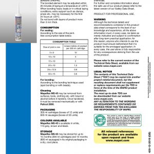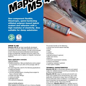 - Mapeflex MS 45 forms a better bond on compact and absorbent substrates compared to neutral silicone