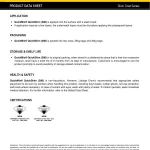 - QuickMix® QuickSkim (388) is packed into two sizes, 25kg bags and 40kg bags