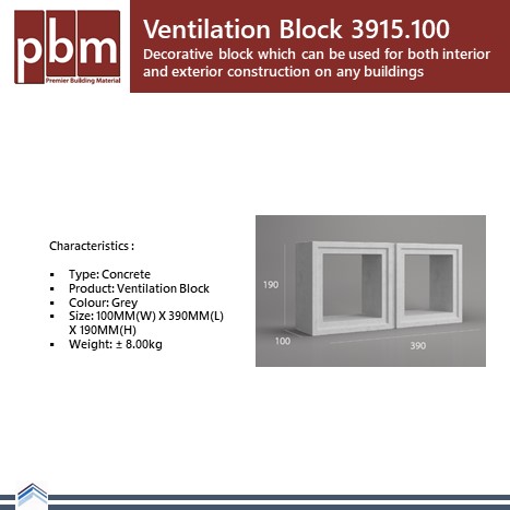 Ventilation Block is decorative block which can be used for both interior and exterior construction on any buildings. The application of VentBlock is tend to be more in the commercial and residential construction projects. These may include building facades, partition walls surrounding property, or even interior walls.